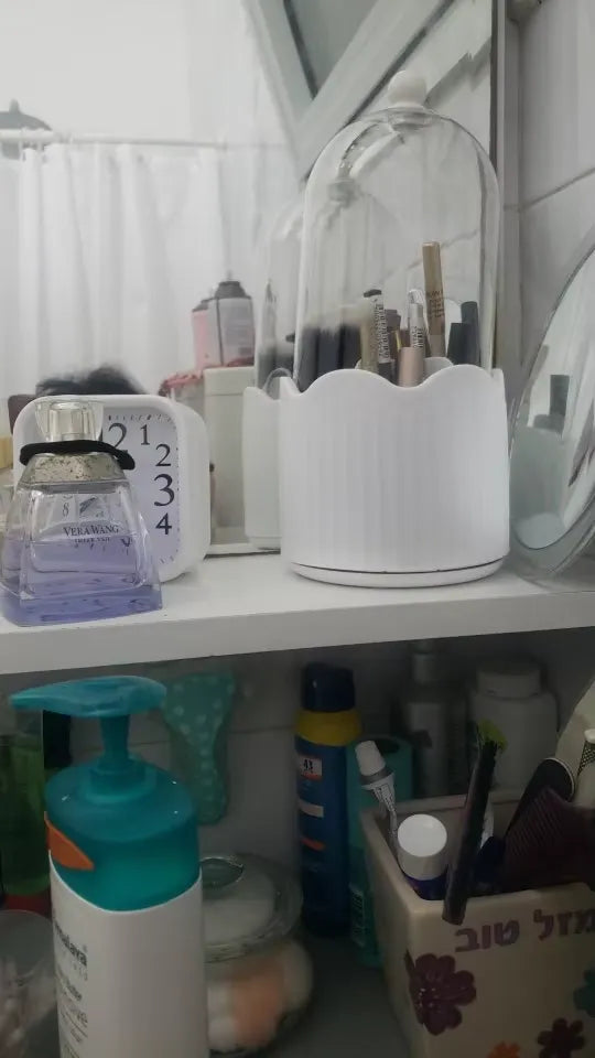 Say goodbye to cluttered counters and hello to organized glamour! This 360° rotating makeup holder is here to transform your everyday beauty routine. Its sleek, chic design effortlessly elevates your vanity, making every makeup application a breeze. Engineered with durable materials, this organizer not only looks good but is built to last, providing a stable location for all your essentials. And, thanks to its smooth rotation feature, access to your favorite products has never been easier. Simplify, organize, and beautify your space with a touch of glamour.